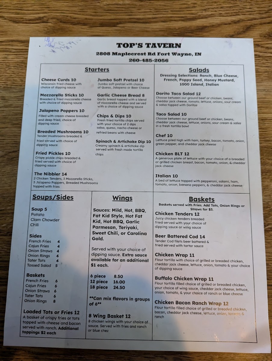 The menu at TOP's Tavern offers a straightforward selection of comforting bar favorites and casual bites that complement its lively, welcoming atmosphere. You’ll find a mix of classic pub dishes alongside hearty salads and satisfying sides, making it easy to settle in whether you’re stopping by for a quick meal or spending the evening with friends.